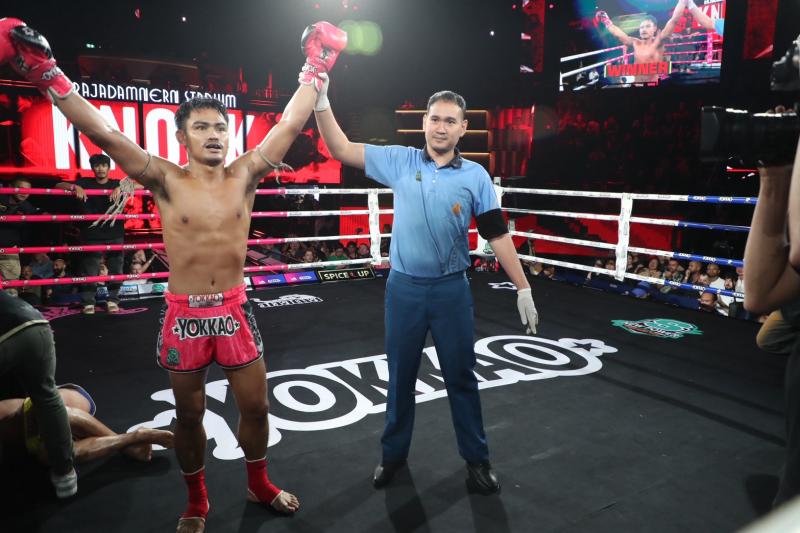 | ศักดิ์ศรี ซุปเปอร์เล็กมวยไทย | ชนะน็อกยก 2 | เพชรภาคใหม่ เอฟ.เอ.กรุ๊ป |
