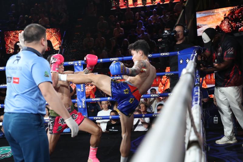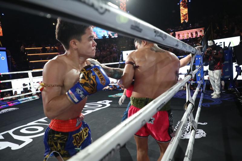 | การต่อสู้ | มวยเตะขาเจาะยางต่อยหมัดศอกรุนแรงจิตใจสู้มีฮึดตลอดแต่ช้ากว่า ''กระเหรี่ยง'' | มวยซ้ายอาวุธหนักแรงต้นๆได้ลุ้น ''พยัคฆ์จิ๋วเมืองตราด'' ''ซ้ายคอลเซ็นเตอร์'' |